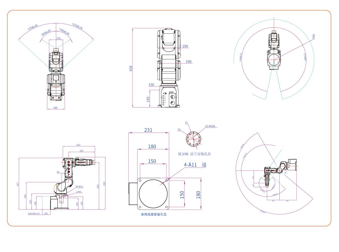 | 第2關(guān)節(jié) | -165°~+60° | ||